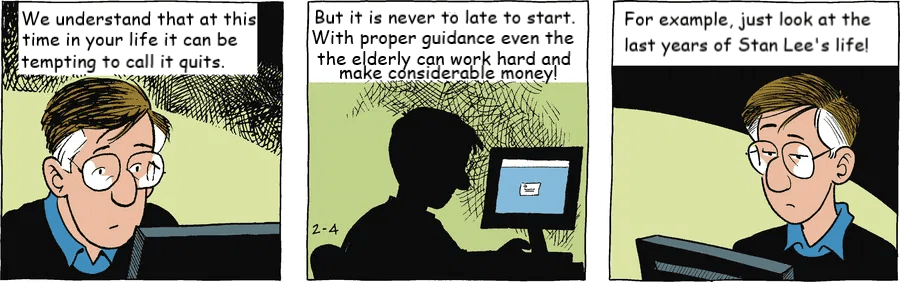 Apparently Batiuk liked Sherry, since Batton went out of his way to call his visit “thoughtful and considerate.” Why is that even noteworthy? A meeting with an employer, especially a one-time visit at the start of an agreed-upon work-from-home arrangement, is courteous by default. Considering the absurd level of consideration Tom Batiuk routinely expects, I wonder what Sherry did to earn this honor. Did he bring Luigi’s pizza and fresh comic books?