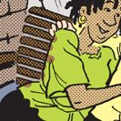 Les’ smug attitude is off the charts in panel 3: not only are his brows in full arch, but he’s sporting a dimple! And what’s going on with Cayla’s blouse in panel 3? Didn’t she see the “Wet Paint” sign?
