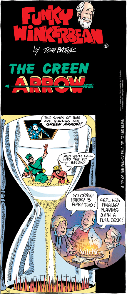 Say what you will about Batiuk; he must be a man of faith. How do we know this? Because he takes so many Sundays off! Great birthday tribute by the way…nothing says “happy birthday” like a reminder that “the sands of time are running out”.