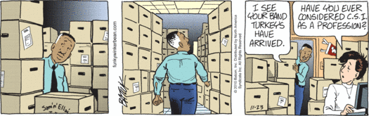 Well. We’ve got Curtis and his cousins, with band turkeys in Funky Winkerbean.
