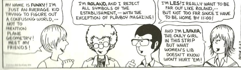 You know, at the official Funky website, one of the pages has Roland as a background image. In fact, you might not want to mention this to Tom Batiuk but all of the background images (except, of course, for Lisa) are from the early days of the strip. Seeing as how he now pretty much disowns those 1970’s strips (or at least that kind of humor), I wonder how that happened?