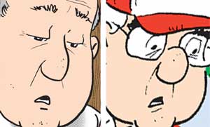 Take away the ballcap and glasses and yes, you do begin to see a bit of a resemblance. Of course, thanks to the time gap ‘twixt Centerville and Westview, no one would mistake the old-beyond-his-years Funkman for the now-decrepit Ed Crankshaft.