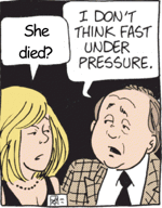 So now Lisa’s death is a subject of humor? After all these years of Very Serious Writing–as in, not “funny” at all, so help us!–it’s now being used in a way that probably makes today’s strip the funniest one in years. (In other news, it’s my birthday. :D)