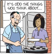 Since Les is cooking 6 charred hockey pucks on that grill, would it have killed Batiuk and his new artist to show the rest of the family?