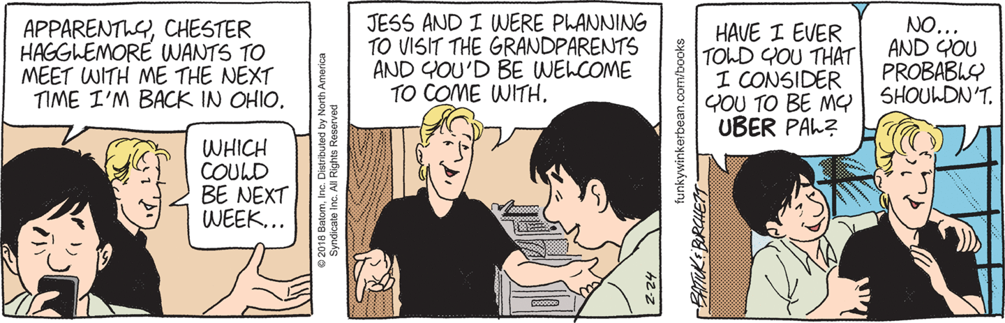 So Batiuk has spent a solid two weeks out of the 52 this year on nothing more than “Chester wants to talk to Pete for some reason”. This is making “Darin takes forever to open an envelope look fast paced.