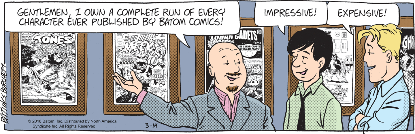Meanwhile, BatBoy is desperately trying to prove that, yes, you can become fabulously wealthy collecting comix — provided you get your start stealing 6 or 7 of them from a drug store.