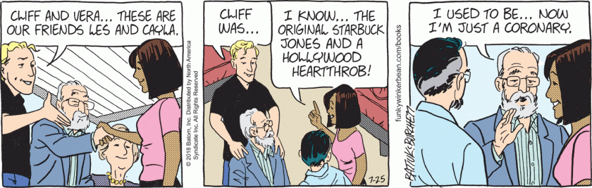 How can one be a “Hollywood Heartthrob” by starring in one forgotten (but beloved) serial before disappearing into bitter exile?  How the Hell can these people be ambulatory and lucid, let alone alive, in their late 90’s?  It’s easy, really.  Because reality in this strip is whatever Batiuk wishes it to be, because reality in the real world refuses to cooperate.