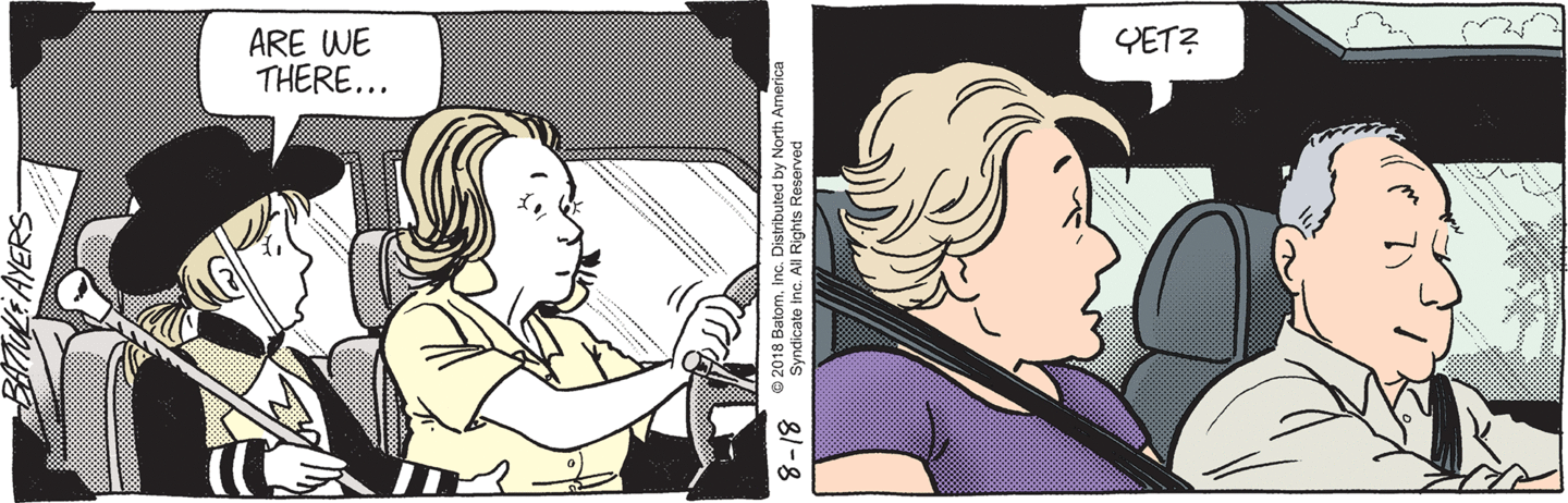 This story arc has to continue next week. Batiuk hasn’t trotted out the joke with the passenger having to go pee right after passing a rest stop.