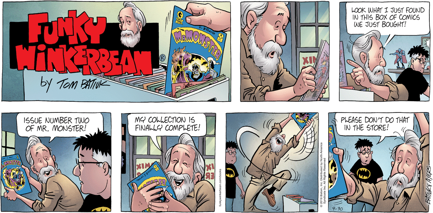 And while Mr. Monster is a genuinely entertaining comic (don’t let this strip prejudice you against it, it really is funny), it’s not particularly old, expensive, or hard to find, so collecting a complete run is NOT an impressive feat…