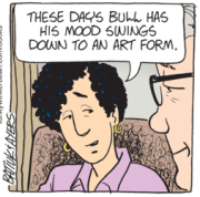 I know it’s been remarked on already but Linda’s punchline that Bull “has his moods swings down to an art form” goes beyond clueless to downright offensive. Does TomBa even think about what he’s writing? Anyone with any experience dealing with a person suffering from bipolar disorder or dementia knows that these behavior changes are beyond the person’s control.