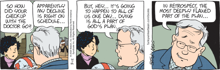 You want to see the polar opposite of Funky Winkerbean? I just watched Alex Trebek’s YouTube video from last week about his pancreatic cancer. He says this: