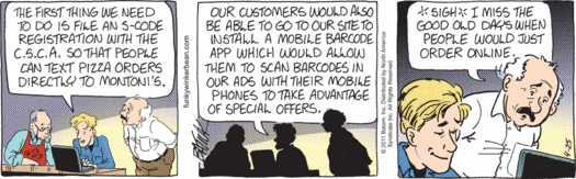 1. Clicking on the link to today’s strip doesn’t work. I’m sure that’s a good thing, but I’m the sort of guy who’d check out the dark, cluttered basement in a horror movie, so what do I know?
