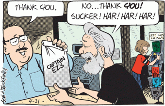 “Thank you”? Awful polite of Captain EZ himself considering that Crazy just spent all of 12 cents.