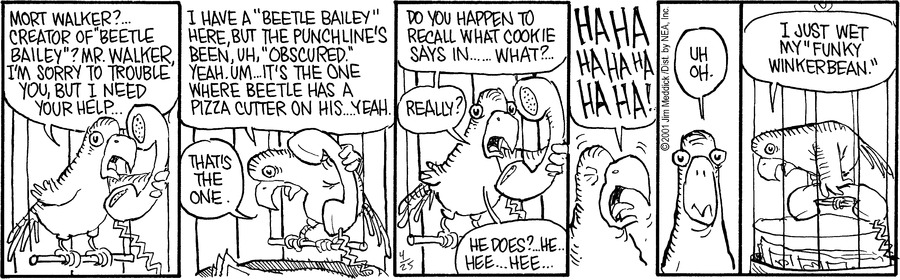 I remember that “Funky walks around an old house” arc. You wade through the archives and you find some pretty weird ones. Like that one about squirrels, or the time Wedgeman stole Alex’s Metamucil. Just the totally oddball ones that you instantly forgot about. I don’t know about anyone else, but those silent strips were always tough to snark on for me. Great for parodies, though.