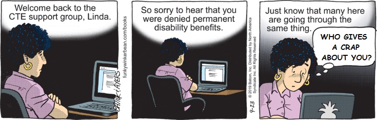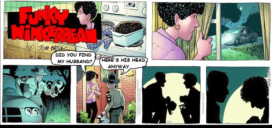 The CTE arc was an absolute disgrace. It played Bull’s dementia for laughs, killed him a way that made no sense, mocked him at his funeral, and then made it all about Les. Someday, when people are remembering Funky Winkerbean and what was so bad about it, this arc is going to be front and center. Tom Batiuk simply cannot write drama, or any realistic human characters or emotion. And this arc proves it. It’s aged badly in the three years since it happened, and it’s only going to get uglier.