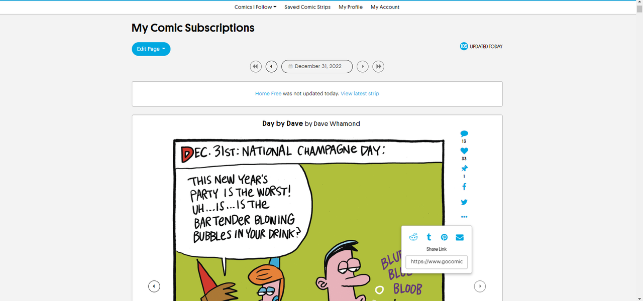 My subscription to GoComics? I like it. It is set up the way @Green Luthor says. Much like the CK “Favorites” page, you can select all the comic strips you want on one page. Selecting and sorting the list is handled slightly better than CK.