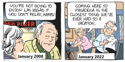 This happens to me all the time. Just the other day I was thinking “Boy Lisa was in the strip THAT many times in 2022? When was that?”. And it was, of course, that stupid gun arc from only a few months ago. Or like how Crazy Harry appeared a LOT in 2022, yet it seems like it’s been years since he had a story of his own. It’s all so incredibly, instantly forgettable.