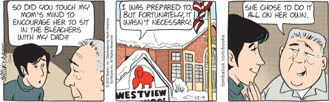 Literal-mindedness, no theory of mind, and no ability to read the room. Yes, this moment could fit into that theory. The funny thing is, Batiuk doesn’t seem to know it either. The crowd accused Les of “bumming us out” when his actual offense was making the speech entirely about himself.