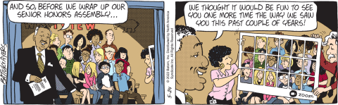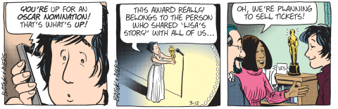 Ohhhh, I so want to cast a write-in vote in the best strip category for “Les Dies at the End,” the faux final strip that revealed Act III was all just his deathbed hallucination.