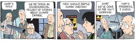 Likewise, Batty thinks the entire world accuses him of “bumming us out” when his actual offense (well, one of them) is making the strip entirely about himself, even when it’s not supposed to be.
