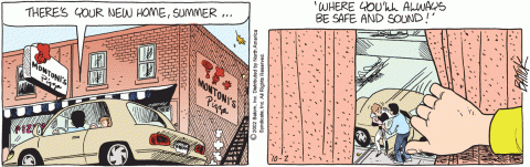 When Davis is drawing a Crankshaft character from scratch a hint of Garfield tends to leak through. The lines are thick and black even where the detail should be finer, and everything is limper, shakier, flatter. And his ability/desire to draw buildings and structures falls off a f**king cliff.