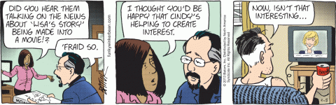 When Batiuk skipped ahead in time following Lisa’s death, I’m guessing he had a general trajectory in mind for where the strip would go for the next several years. Story by story characters reached the endpoint he had imagined back in 2007, and then he mostly stuck them in pointless holding patterns to await the end while he played around in comic book Hollywoodland. The only exception might be Bull’s CTE arc.