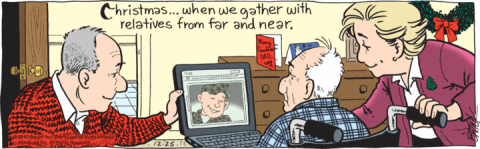 So they’re de-aged…again? (May just be that the CS cartoonist cares about continuity less than Tom does) I’m sure there was some long thread before I got here about the Time Wars. I never grasped which strip was in the past, and which the future. Why are they both the same? “OH NO, I dropped my iPod Nano down the self-driving iChamberPot, which had all my Napster downloads on it! And the flying car-like object has lost all of my MySpace posts!! Ask the Robbie, or at least Jeeves! Siri, order me a McDLT.”