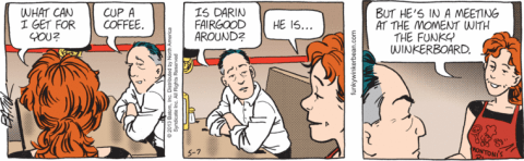 Say, did anyone notice that in today’s (1/16) C’Shaft the Grady Twins are still being depicted as though they’re in their tweens, not Westview High age? What happened to the Great Time Discrepancy Resolution that Harley the TransChronal Custiodian promised us in FW’s waning days? Did Summer’s knowledge of the future change it? Will we see a circa 2013 DSH John and Crazy Harry in this arc? And when will Batton Thomas (Creator of the Syndicated Comic Strip “Three O’Clock High”) pop up? Enquiring minds want to know!