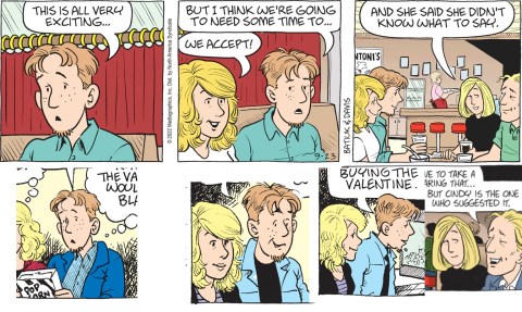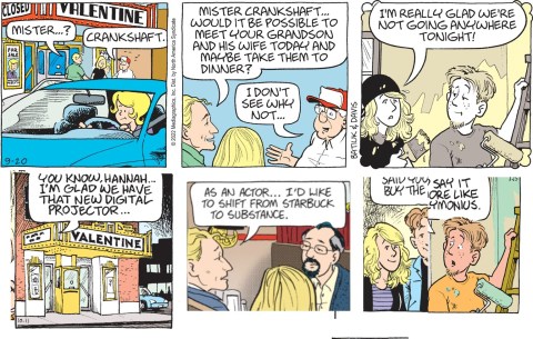 In today’s Crankshaft I see that Max and Hannah are at their jobs at Channel 1. So who’s minding The Valentine for Mason? Continuity? What’s that? Chalk another one up to TomBa’s “crank ‘em out” work philosophy.