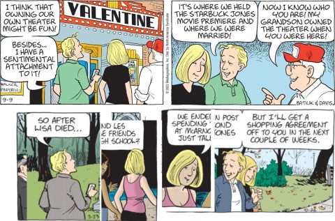 There’s just no believability in this world. Nothing is consistent, permanent, or realistic. Anything can be thrown out and re-written the next day. Which would be fine if Batiuk embraced that, but the opposite is true. He thinks his strip is superior because it’s so realistic, but it runs on Negative Continuity.