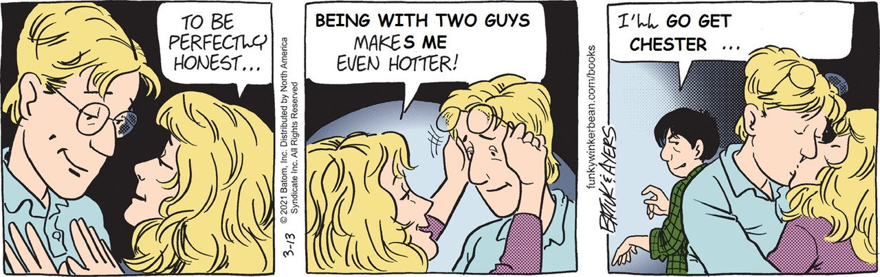 Yeah, he’s going to ruin it with Funky tropes, but I’ve frequently unironically enjoyed Crankshaft. It’s as repetitive as Groundhog Day, and I hate the Lena strips because we’re supposed to root for the needlessly cruel and abusive team who harass an innocent and well-intentioned woman, but when Batty feels like it, he can still turn around a bland but pleasant gag-a-day strip
