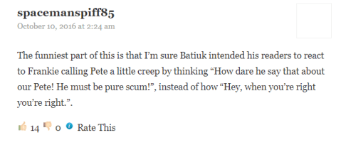The irritating thing is that Batiuk never got it through his thick skull that being an aggressive jerk who won’t throw his hands up in despair at the first sign of trouble is an appealing quality.