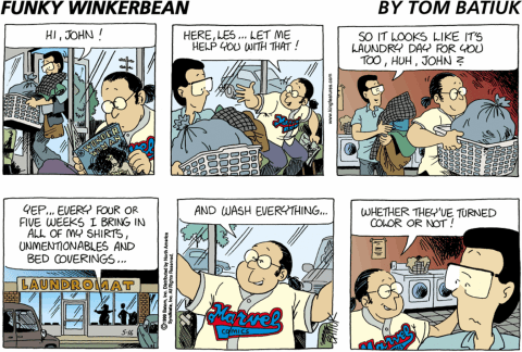 There’s a revealing bit in an interview Batiuk did for a North Carolina university/public access thing. I think BWOEH posted it in January. The interviewer asks about the “lame parade balloon” joke on The Simpsons, and they talk about Marge being a Funky Winkerbean fan. That’s… not at all what happens in that scene. It’s pretty clear that FW is the butt of the joke, but Tom Batiuk went on TV and told the audience what he wants them to believe instead.
