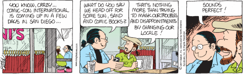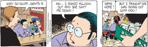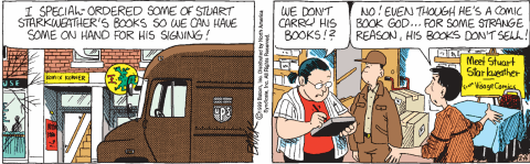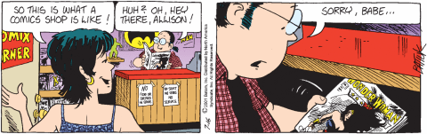 During the summer of ’99 Mopey Pete is desperate to get away from the twin harpies of his mother and his sister. So he decides to take up Wally Winkerbean’s old job as a professional Komix Korner loiterer.