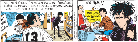 Do you think Stuart Starkweather is supposed to represent someone in particular or is he just a general statement/complaint about the then-current Neil Gaiman/Alan Moore trend of nihilistic attitudes in comix? He comes across as a poor man’s John Constantine.