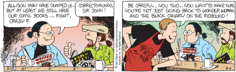 I would just like to point to once again Batiuk’s continuing inability to grasp the pacing of a six-panel strip. He will simply write a four panel strip, then add extraneous panels to fill out space.