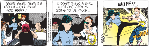 Becky’s handling is definitely weird here, and I got a gut feeling that it may get worse as I notice her use of the prosthetic arm again in these strips. May be early to judge, but at this point as the comic is clearly focusing on the pairing a lot, I don’t know why Batiuk didn’t have Becky and John tie the knot then and there and save Wally the salt in the wound. I may be biased as I am one of those people who think he horribly treated as far as the concept of “person who was thought dead finally comes home to find his love remarried” goes, but with this sort of setup it feels like this was what Batiuk always preferred, but either got cold feet that he quickly took the chance of the next time skip to reverse course on, or thought Becky needed a very dramatic love triangle.