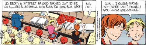 How many times does Tom Batiuk have to go through this? I get it, Tom, you love comic books and your mom threw them out and they’re worth a billion gajillion dollars. His own therapist would be telling him to change the subject already.