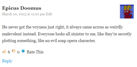 The irritating thing is having to remember that he’s a dumb kid who only wants to enjoy something one set way. It’s why he made that arch, petulant and idiotic comment about the campy sixties Bat-Man show: they weren’t enjoying the character his way and they insisted on waving someone who reminded himself too much of the schmuck kid he actually was in his face: Robin.