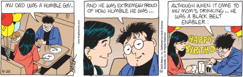 1. I agree those strips are difficult to read. My relationship with my Dad was great, but he died all too soon, 1980. Mom lived to 95. She died in 2019. With her I have lots of regrets. We weren’t close. Mom wanted to argue all the time. I debated on telling this next part. I lost. I believe Mom loved me, but did not like me. I was sort of the black sheep. I made different choices and Mom did not like them, particularly in religion. I was raised Catholic. Then switched to Protestant churches. We would reconcile, but the arguing would begin again. I didn’t like arguing, but I was not innocent. I would try to call her weekly. Then the arguing would happen, I would skip a month. Call. Berated. Put off calling again, sometimes up to 3 months. (Yes. I am a Froot Loop Dingus) Mom would be angry. I said, “You know the phone works both ways.” She said it is not her responsibility to call. It is mine. So yeah. These strips are painful.