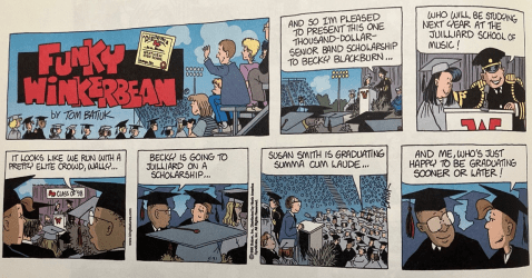 Batiuk acts like Funky Winkerbean is some kind of cultural kingmaker, like having Weird Al Yankovic parody your song, or being a guest voice on The Simpsons. Then in the same breath he says “they’ll have to explain to the kid what a newspaper is, LOL.” Either you’re important or you’re not, Tom. Pick one.
