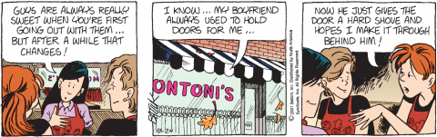 She wants a guy who is sweet, stays sweet, and does what he says he’s going to. A pretty low bar. Whether Becky is talking about Wally in these strips, or if she’s had some off panel boyfriends since, I don’t know.