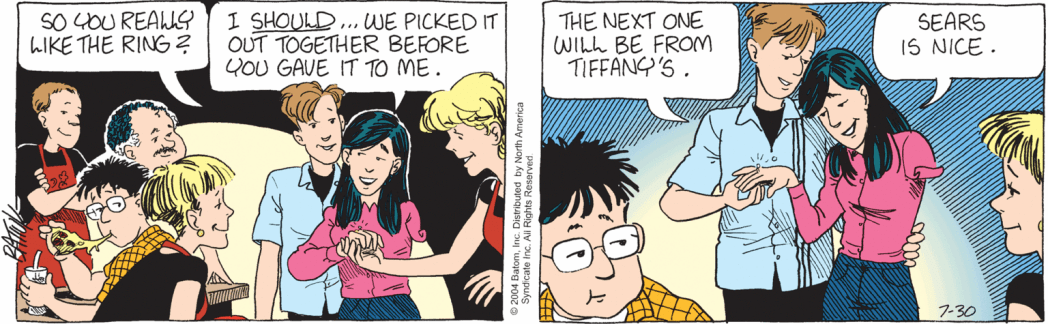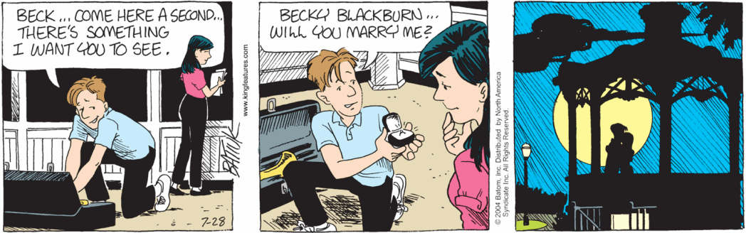 In July of 2004, Becky and Wally go from dating to engaged.
