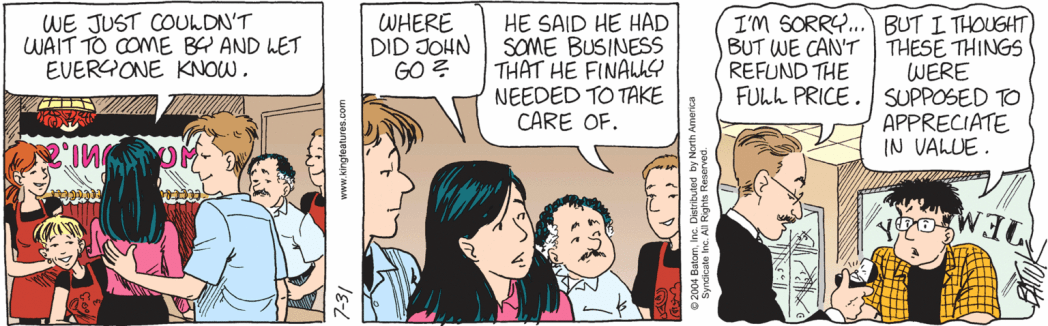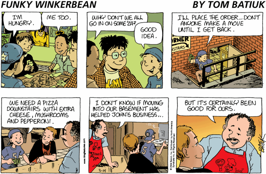 With so much going on in the Funkyverse, and his major emotional arc as the hypotenuse of a love triangle seemingly over, what could Batiuk conceivably do with poor John? Maybe he’d remain on the back burner forever. An occasional Sunday outlet for comic or nerd related humor.