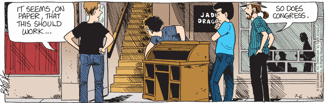 Of course, I’m not a professional writer who gets paid to think up these things. If you’re looking for Tom Batiuk’s writing talent, good luck, it’s hiding right next to the Snipe.