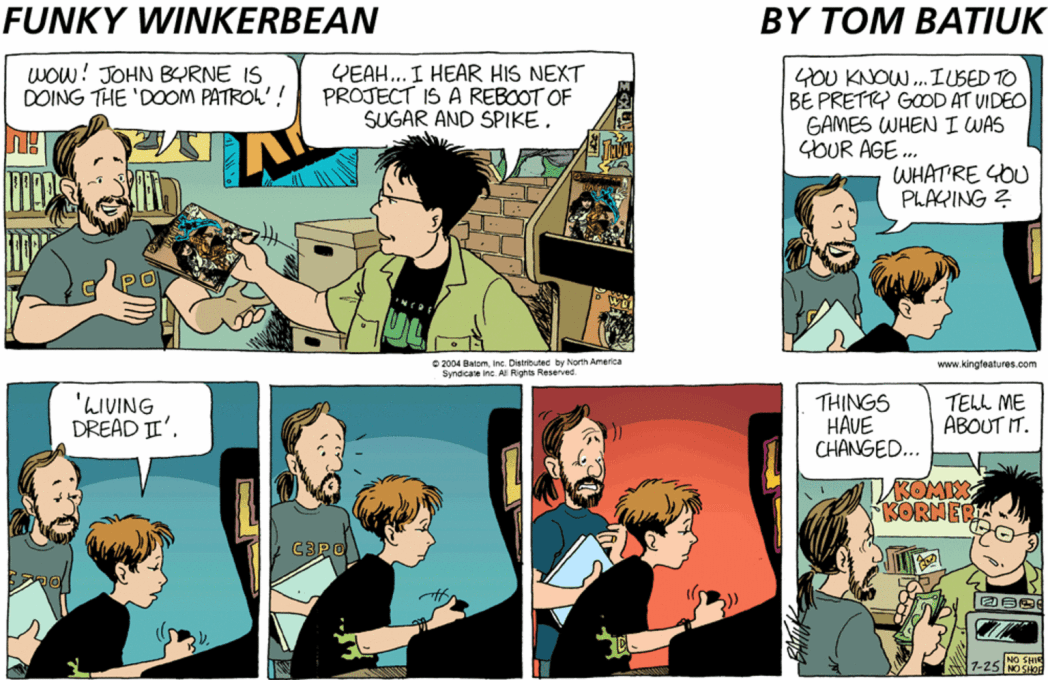 I’m sure this one strip is relatable to the kid who wanted to go to a comics shop to pay to play a giant, new, cabinet arcade zombie game in the year of our lord 2004, rather than just playing A Fistful of Boomstick on his PS2 from the comfort of his home.