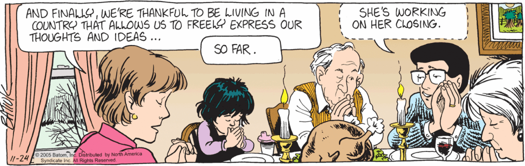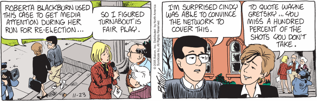 I think Tom Batiuk is actually worse than your average ideologue. Ideologues know special cases exist; they just don’t care. Their position is the correct one, the end. Batiuk refuses to acknowledge the existence of anything valid about any nuance of any position contrary to his own. Or consider narrower questions. Not even in a court setting, whose purpose is to do exactly that.
