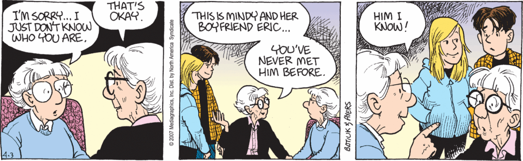 And Mindy walks through her front door from Funky Winkerbean back into Crankshaft.