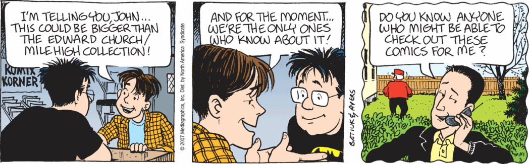 I will say this. It bothers me when Batiuk doesn’t credit his artist. He’s breaking comic tradition and depriving a fellow creator of credit. I would understand it if he had an apprentice who slavishly imitated his own style. But he had two artists with extremely disparate styles that resembled his own not at all, and for years he didn’t credit them.