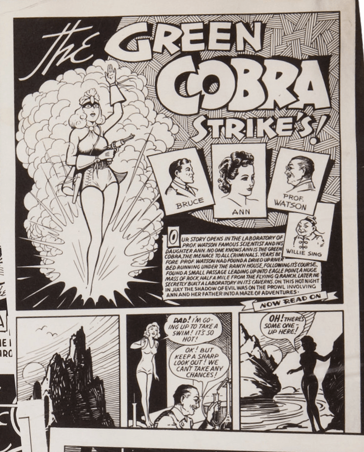 Born in 1888, Edgar Church was a freelance commercial illustrator, who primarily created telephone book advertisements for the Mountain Bell phone company. It’s believed he initially got into comic books as a source of reference material, though most of the comics in the collection were as pristine as if they had never been read. At one time, he had dreams of creating comics himself, flying out to New York in 1940 to pitch his super heroine strip, The Green Cobra. To no avail.